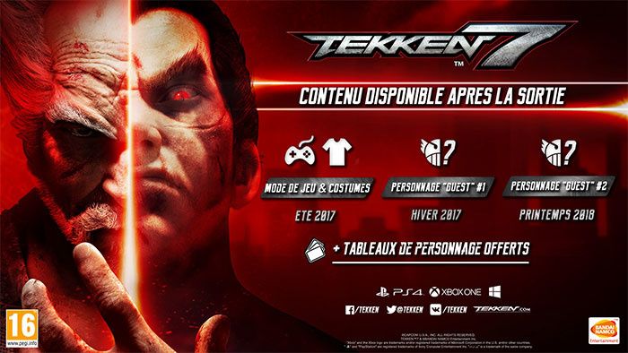 Tekken 7 sera disponible sur PlayStation4, Xbox One et PC sur Steam à partir du 2 juin 2017. Précommandez dès aujourd'hui pour accéder à Eliza, célèbre vampire de Tekken Revolution, et achetez Tekken 7 Collector's Edition contenant la Deluxe Edition, le Season Pass (uniquement disponible en Europe, au Moyen-Orient, en Afrique et en Australasie), une spectaculaire statue représentant un combat entre Kazuya et Heihachi, un SteelBook spécial et la bande-son Tekken 7 officielle.